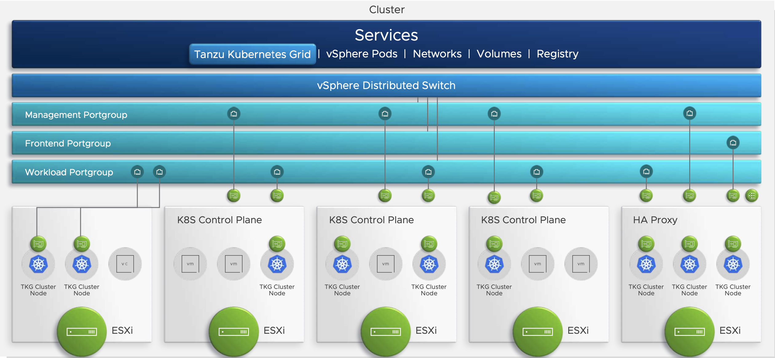 The install wizard creates the Kubernetes control plane nodes on vSphere, and connects it to the management and workload networks. The embedded Kubernetes control plane then exposes a set of services, including the Tanzu Kubernetes Grid Service for vSphere. The TKG Service gives developers access to upstream aligned, fully conformant Kubernetes clusters, right inside your existing vSphere 7 infrastructure. You even get a choice of which load balancer to use, including HAProxy.