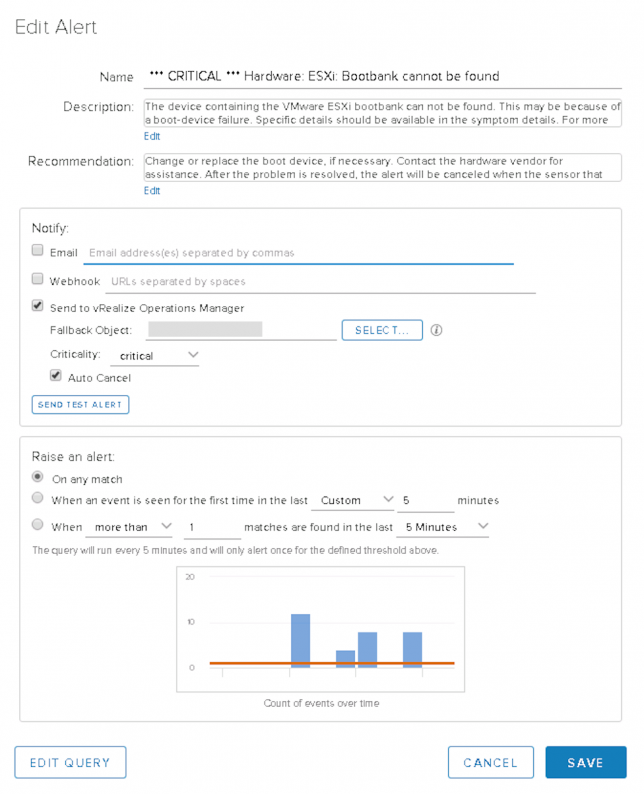 For some reason, vRealize Operations doesn’t pick this up as a host issue that it alerts on, so if your alerting regime is based on vROps alerts, you might not get alerted immediately. Thankfully there is a way to remedy this, and have vROps and vRealize Log Insight work together at the same time.