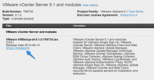 A collection of MD5/SHA1 checksums for the vSphere 5.1 Release:#