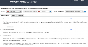 That´s where the fun starts. The HealthAnalyzer software comes with a web interface where you can look at everything it collected and prioritize the different findings. Of course, it also comes with suggested priorities from VMware, for the given data. This is where the learning is for everyone conducting the health checks.